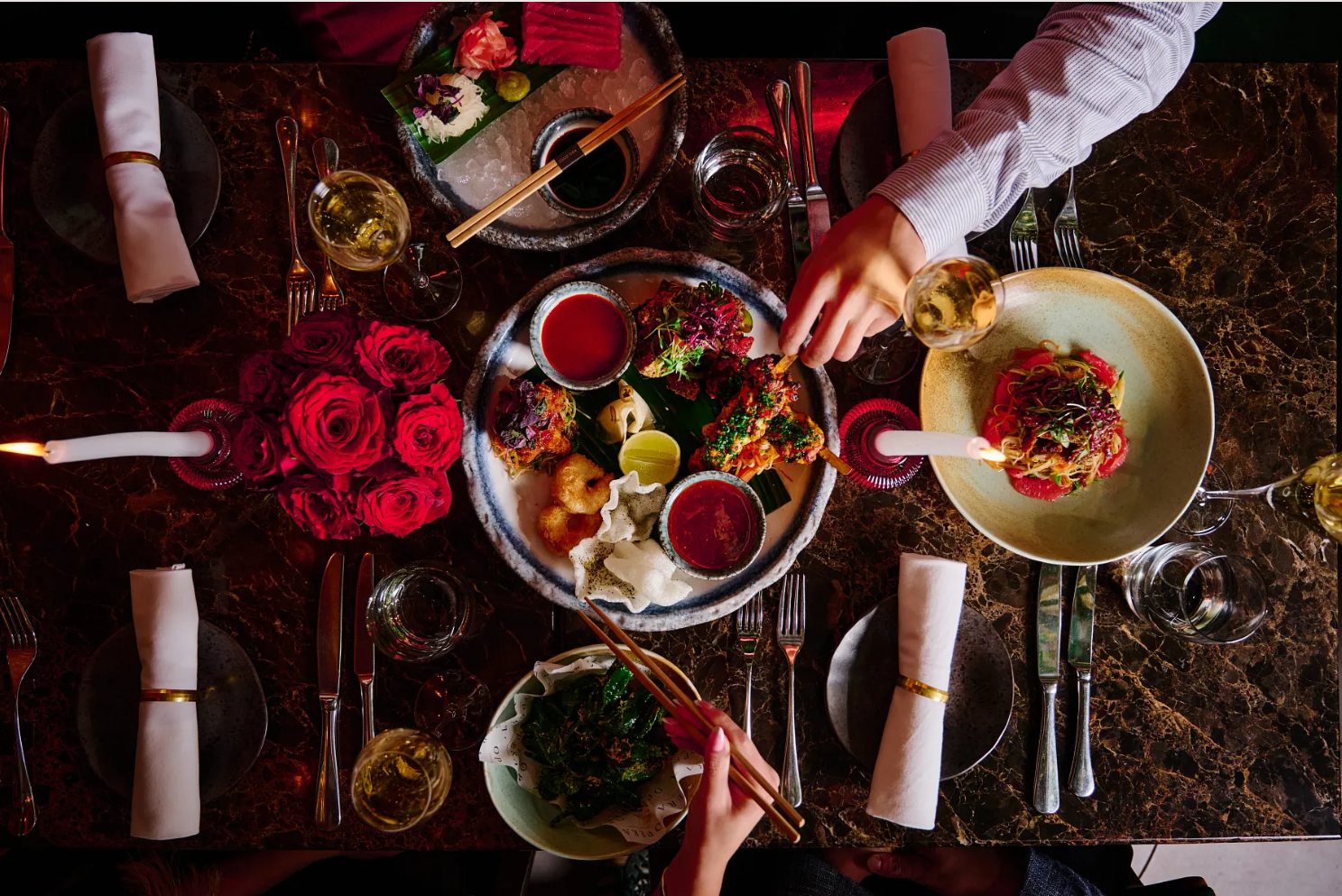 From the first dish placed in the centre of the table to the final indulgent dessert, our Valentine’s experience is all about connection. Bold Asian-inspired plates, premium steaks cooked to perfection, and generous sharing dishes create an evening designed to be enjoyed together.
